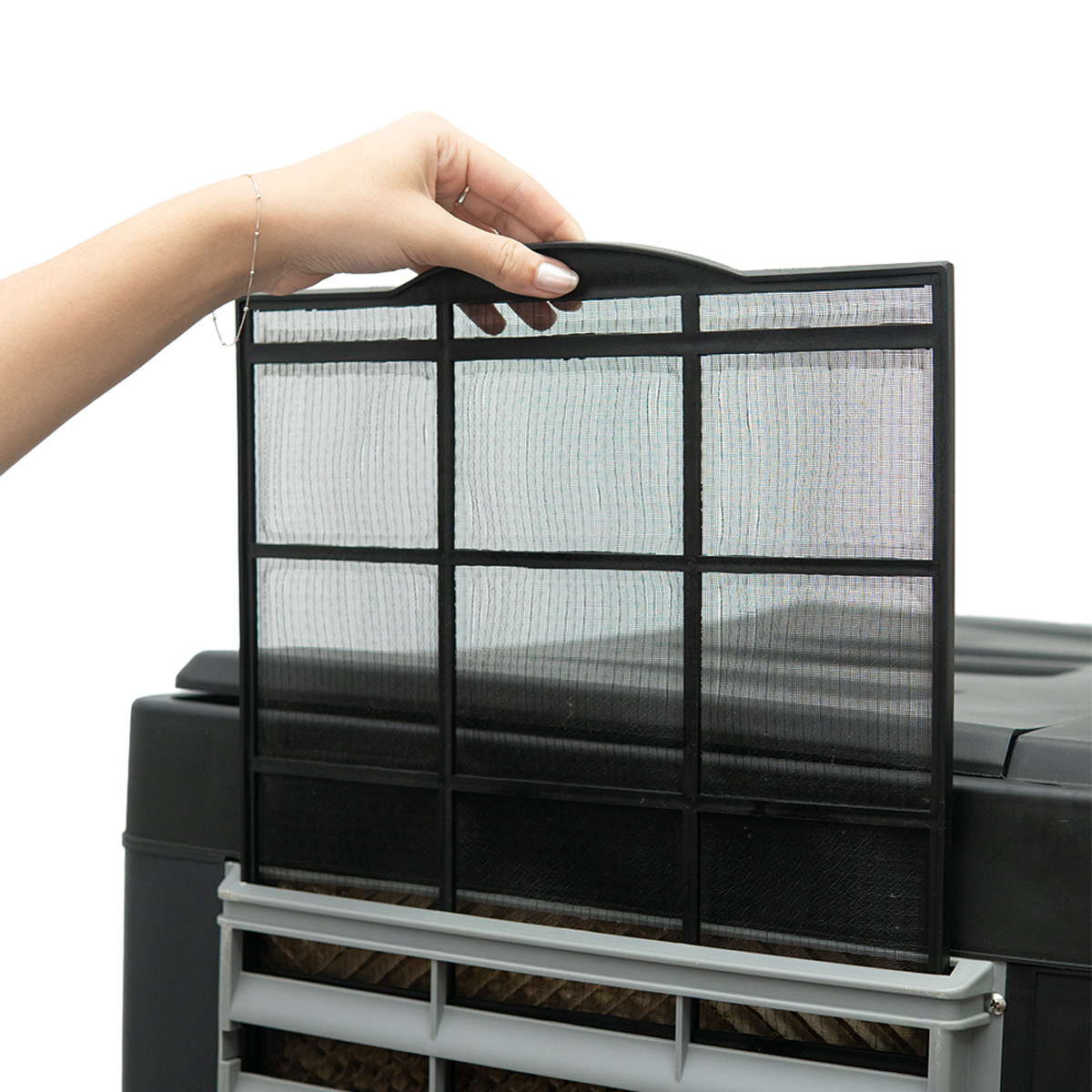 O climatizador conta com um filtro ANTI-PÓ para purificar o ar.